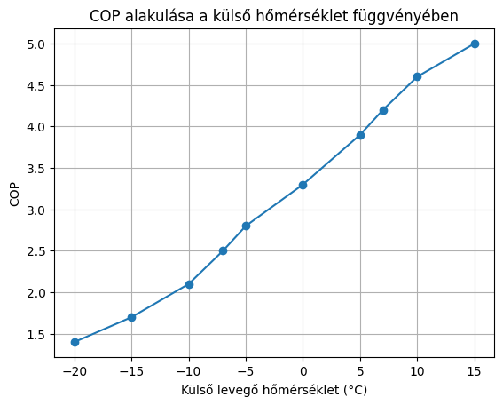 A COP-görbe meredeken esik, ahogy csökken a külső hőmérséklet – ez fizika!
