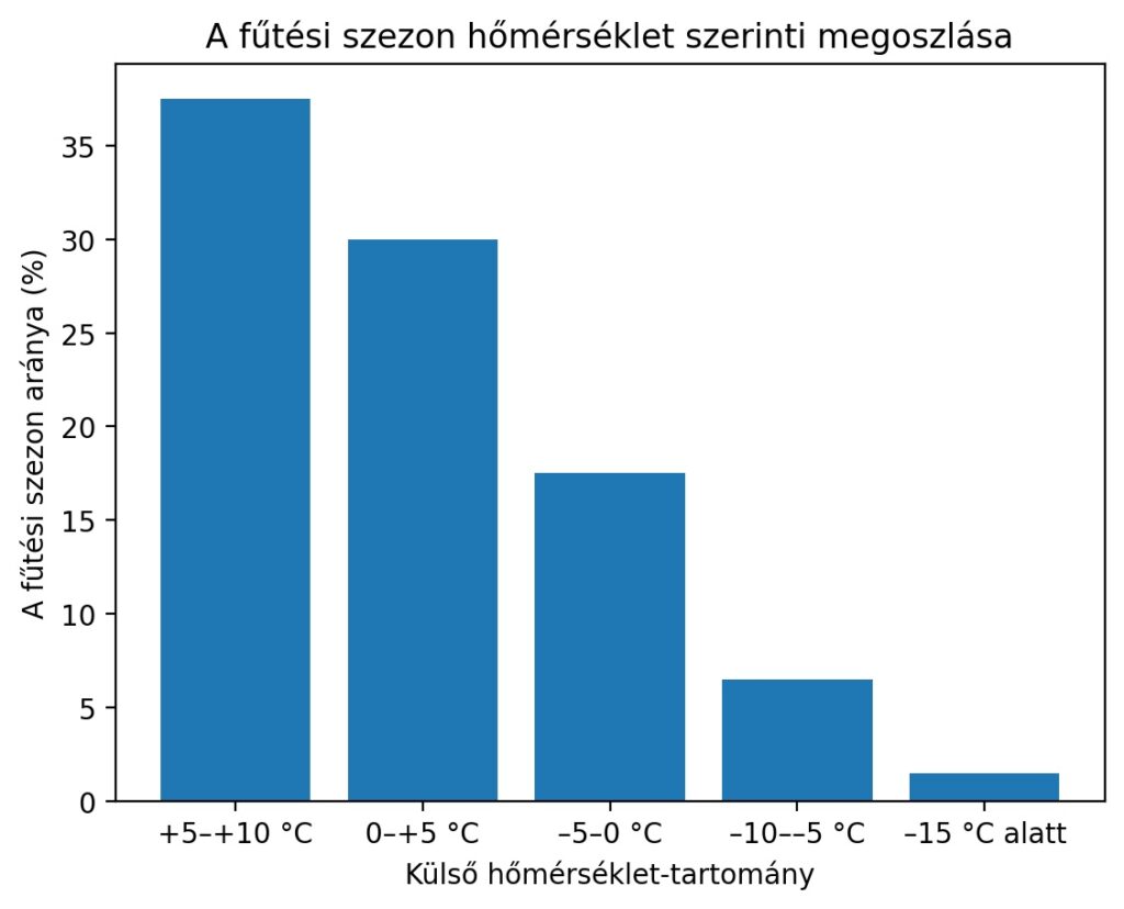 Most bontsuk ki egy fűtési szezon külső hőmérsékleti tartományát százalékosan: